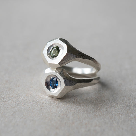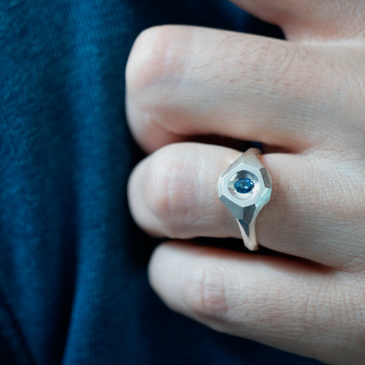 Geoda Single Stone Medium Ring - Blue Sapphire