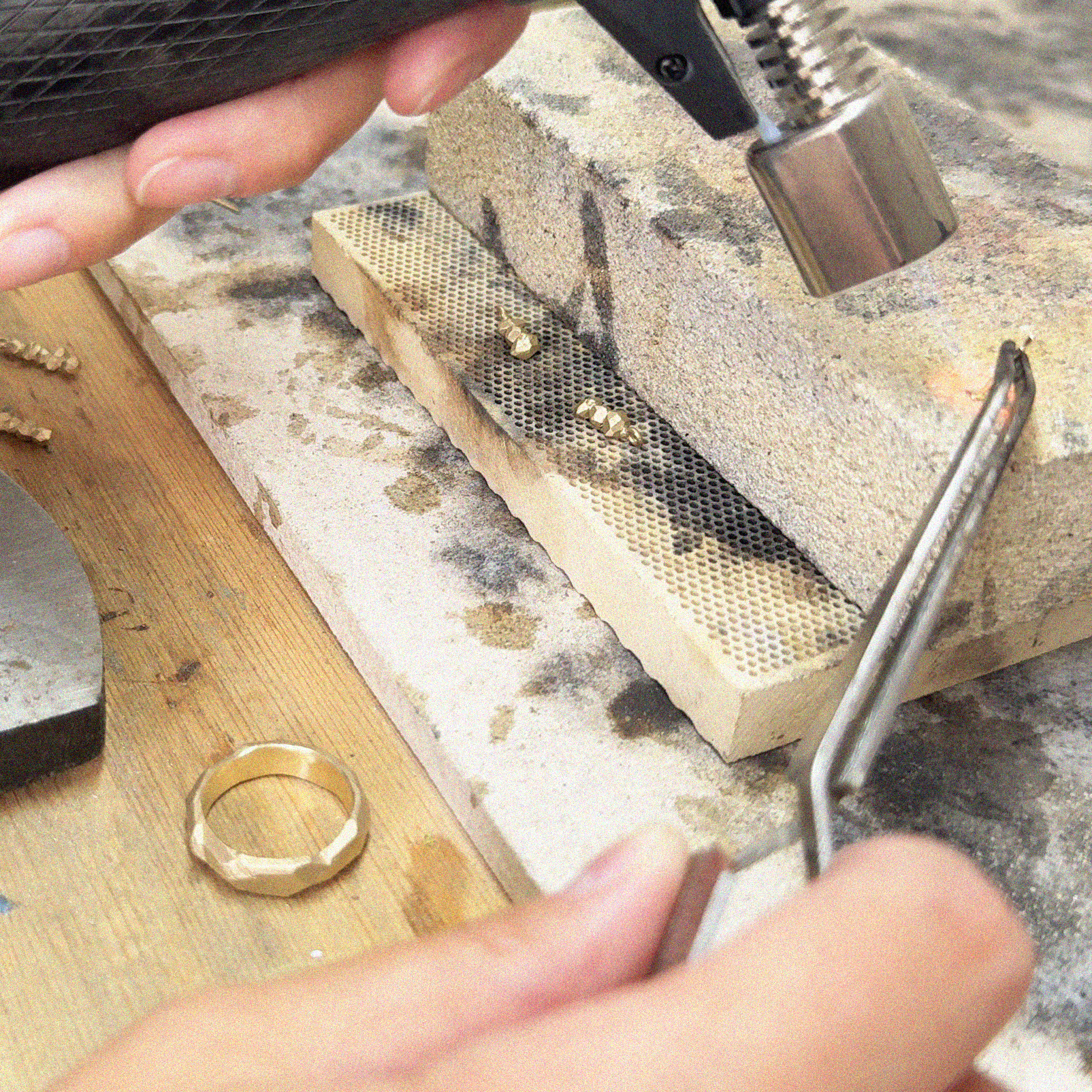 María Manola Toro Fernández is a Chilean jeweller whose work is influenced by volcanic landscapes and the rocky shapes of the Andes. After studying design at Pontificia Universidad Católica de Chile and completing a one-year jewellery course at Walka Escuela, she taught herself the wax carving technique, experimenting with different geometric and organic shapes. Manola established her business in 2018, selling her creations for five years at Espacio Colaborativo Nalca in Santiago de Chile. She relocated to London in 2021, where her pieces are now stocked by Tomfoolery London, Gill Wing Jewellery and Diana Porter Shop.